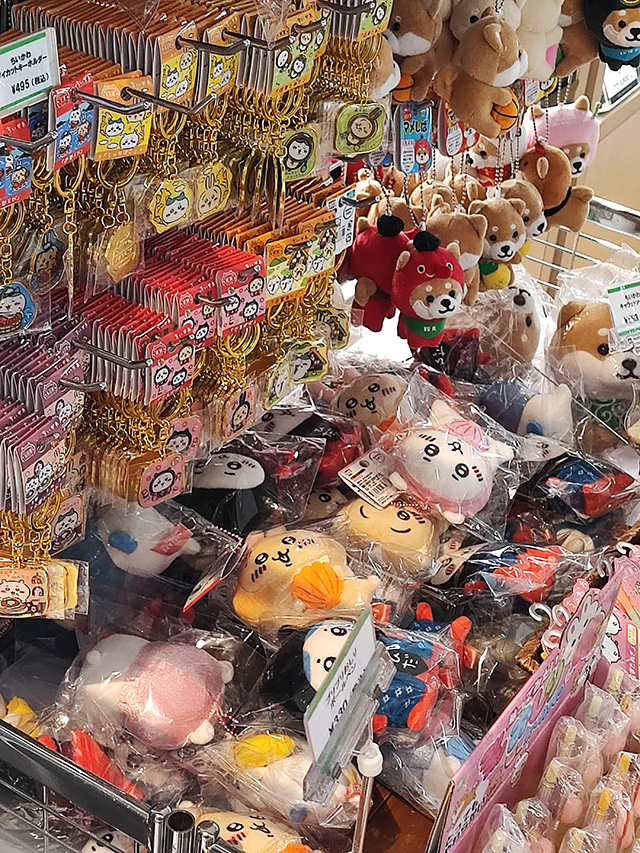 マスコットはちい、ハチが多いんですよね。あと怒られるかもしれませんがご当地マスコットって顔が可愛くないですね。ちいかわランドのマスコットと可愛さが全然違う。