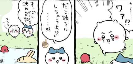 ちいかわ漫画 考察 ちいかわ対池タコ 水が得意なうさぎ!