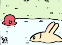 最後にうさぎさん対池タコか?見つめあう2匹