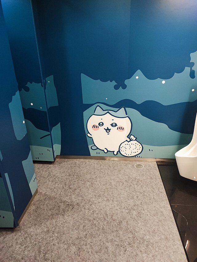 さてちいかわパークはトイレがこの最初のフロアーにしか無いんです。しかも超目立たない場所ですが、結構トイレが凝っててかわいいので是非寄って下さい。