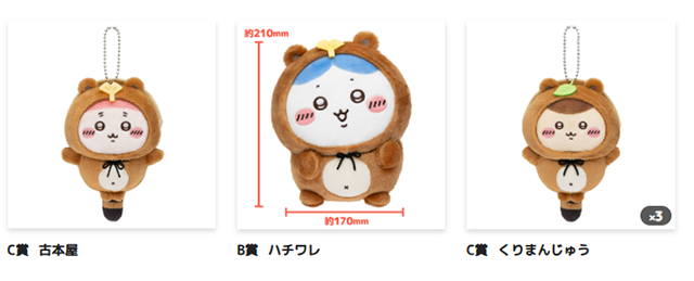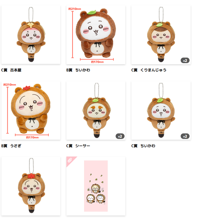 C賞はうさぎさん×1 古本屋×1 ちいかわ×2 くりまん×2 シーサー×2