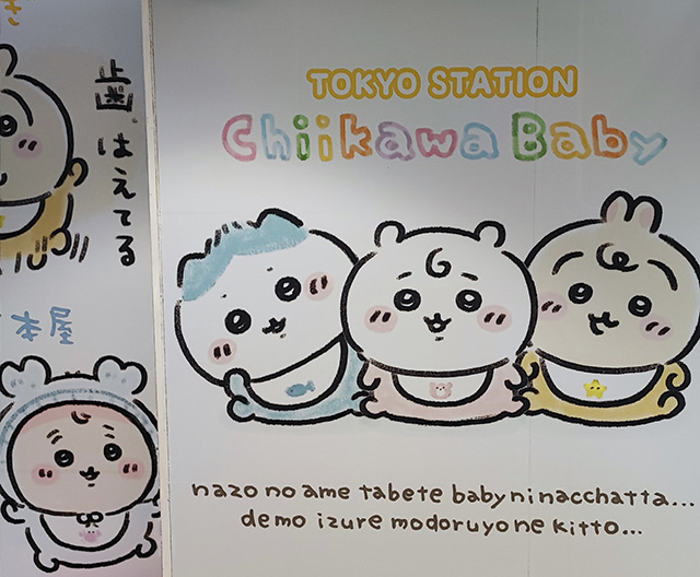 東京駅近辺の地下街はちいかわベイビーでラッピングされてます。
